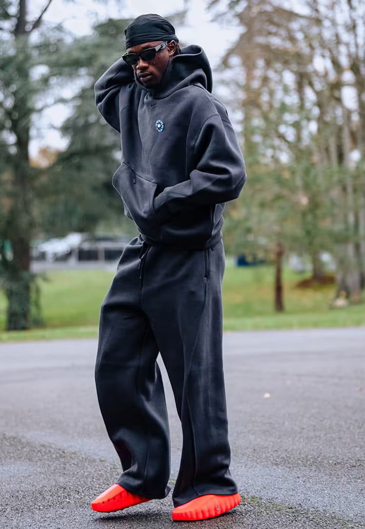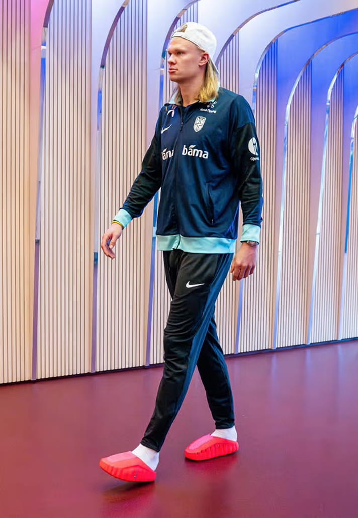 Now, players are stepping out before and after matches in footwear that looks like it was taken from the future; boxy, oversized silhouettes in bright colours that look like futuristic relatives of your dad’s gardening clogs.